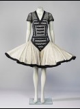 Vestit. La Marthe (Marta Esteban, 1971). Barcelona. 2006. Bodi: gènere de punt de polièster i elastà amb cinta de sarja de cotó; bodi interior: sarja de cotó amb barnilles de plàstic i cintes de ras de polièster i de sarja de cotó; faldilla pantaló: organza de cotó, gènere de punt de polièster i elastà amb barnilles de plàstic i cinta de sarja de cotó. Etiqueta: «la marthe». Primer premi International Apparel Federation, Taipei, 2006. Donació La Marthe, 2014. MTIB 4.231/14