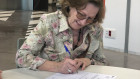 Signatura de la donació de la sra. Victoria Cantavella