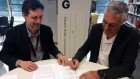 El president de l'ADP, Joan Campderà, signant la donació de l'Arxiu de l'ADP al Museu del Disseny de Barcelona