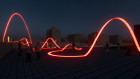 - Electric Routes. Aquesta instal·lació proposa un joc amb les altures i l’entorn de l’esplanada elevada del DHUB, en què s’envaeixen els voltants a cotes diferents i es permet al públic observar la instal·lació des de punts i perspectives també diferents. L’obra resultant convida les persones visitants, d’una forma gairebé directa, a resseguir una fina estructura en forma de tira led que simula un cable elèctric fulgent a gran escala. Aquest feix de llum —com el solc d’un fuet lumínic que deixa la seva petjada en la superfície sòlida— dirigeix al públic cap a l’exhibició de Yamaha, en la qual els productes es troben ancorats seguint la topografia orgànica de la instal·lació. A càrrec de Yamaha Light Meeting Point (Gisela Cardona, Marko Jesic, Nona Kadieva i Roberth Carrión, grup d’estudiants de cinquè any d’Arquitectura de la Universitat Internacional de Catalunya (UIC).